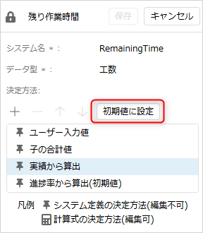 各フィールドには、「値の決定方法」があり、フィールド単位で初期値が設定されています。