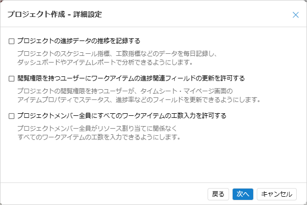 閲覧権限のあるユーザーにワークアイテムの進捗データの更新を許可するプロジェクトのセキュリティ