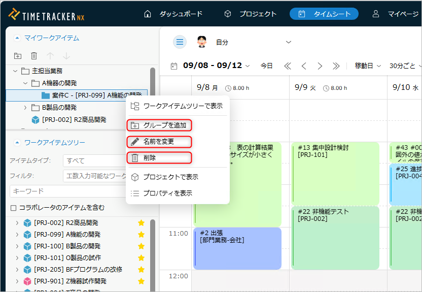 「マイワークアイテム」のアイテムは名前を変更したりグループ化することで、より使いやすくなります。