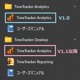 If Analytics 1.0 is installedIf Analytics 1.0 is installed, two "TimeTracker Analytics" entries will be displayed as shown below.