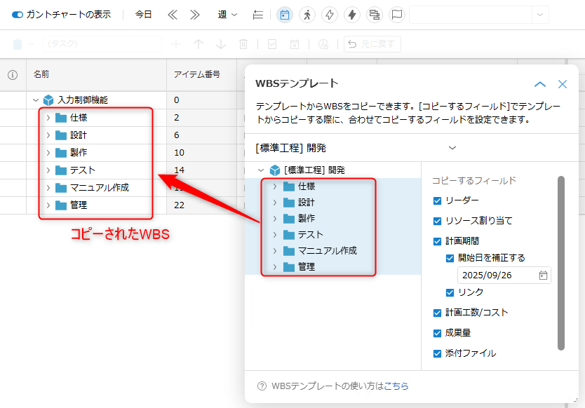 You can easily copy WBS from an existing project by dragging and dropping, which makes editing work items more efficient.