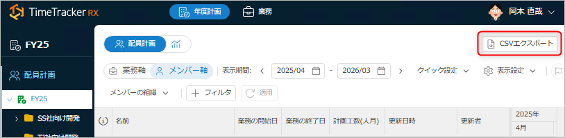 業務を横断して配員計画のデータを外部ファイルにエクスポートできます。
