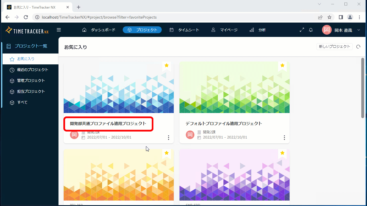 - 「開発部共通のプロファイル」を適用したプロジェクト