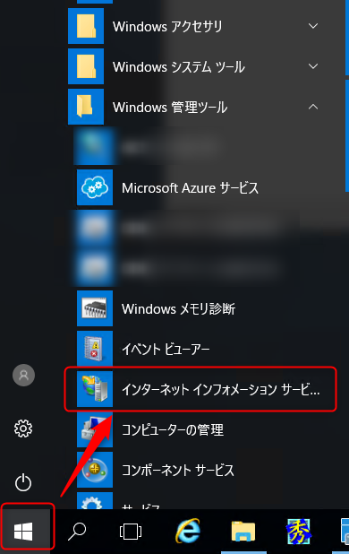 下図をクリックして IIS を起動してください。