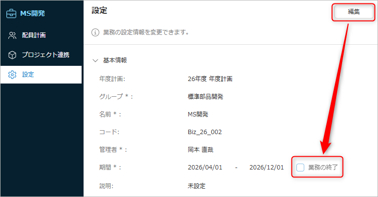 対象業務の「名前」以外の場所をダブルクリックすることでも編集できます。