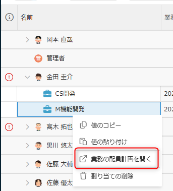 配員計画は業務単位で割り当てます。