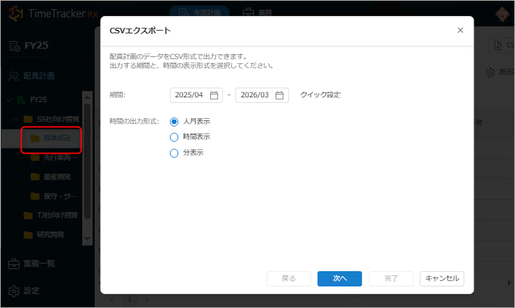 業務を横断して配員計画のデータを外部ファイルにエクスポートできます。