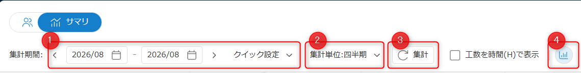 • ②:集計単位を切り替えます。