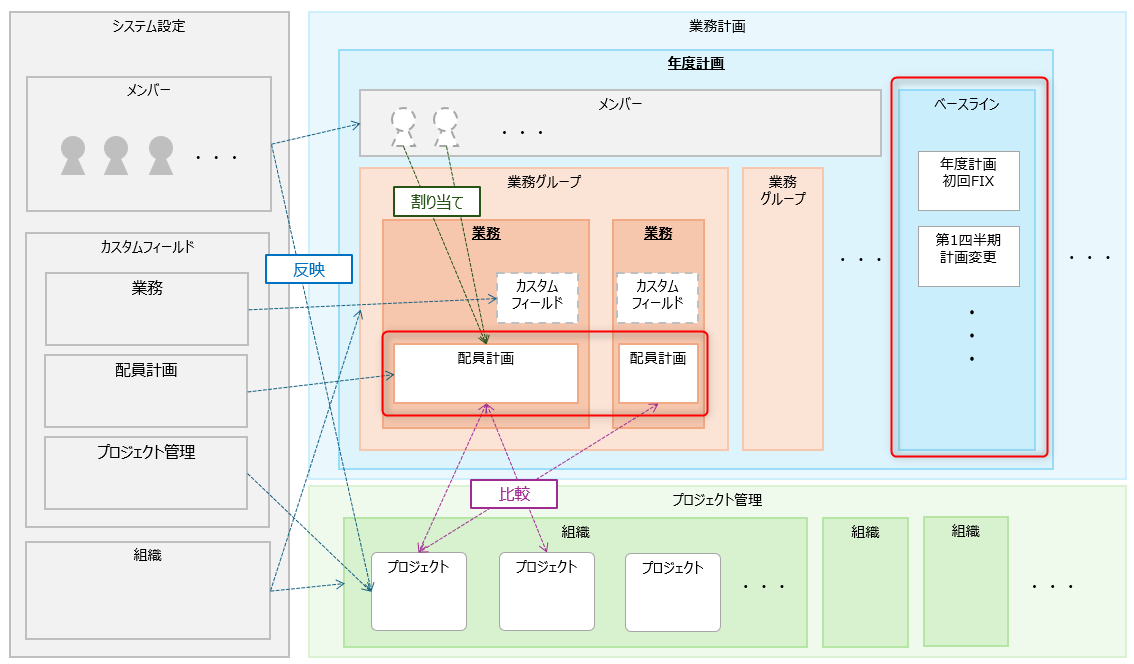 業務計画に関係するデータの構成」の下図赤枠の項目です。