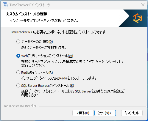 データベースサーバーではインストーラを実行しない方が必要な個所に、必要なコンポーネントをインストールできます。