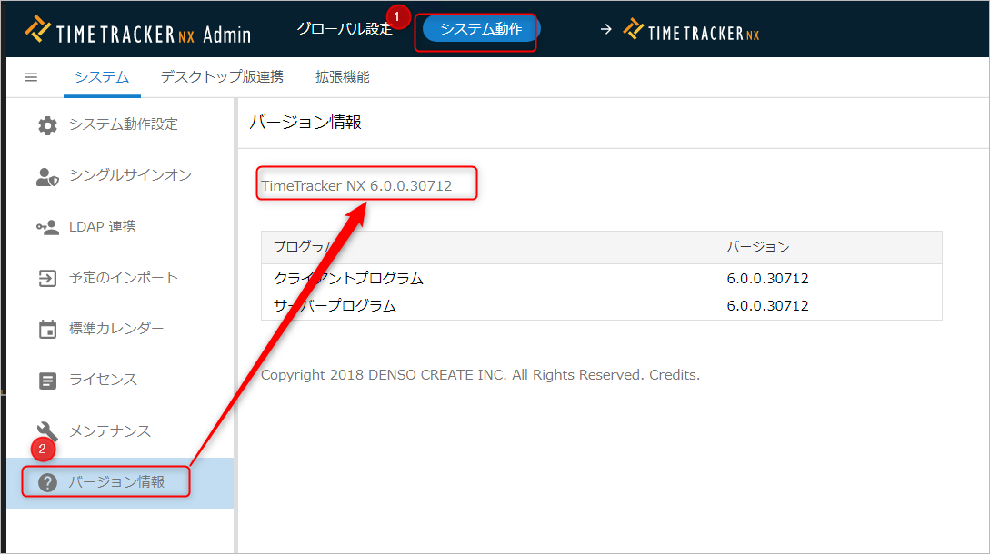 4. 以下の画面からTimeTracker NX のバージョンを確認してください。
